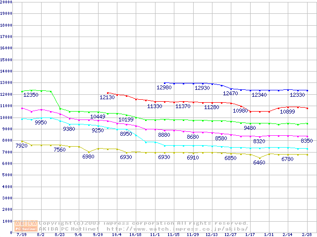 | [↑前グラフ]: | Socket 604 (micro-PGA,FSB 533MHz,L2 512KB,Prestonia)の最安値推移 |