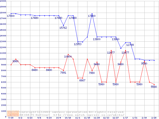 | [↓次グラフ]: | PC4000(DDR500) DDR SDRAM DIMMの最安値推移 |