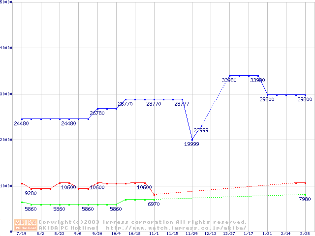 | [↑前グラフ]: | PC800-40 DRDRAM RIMMの最安値推移 |