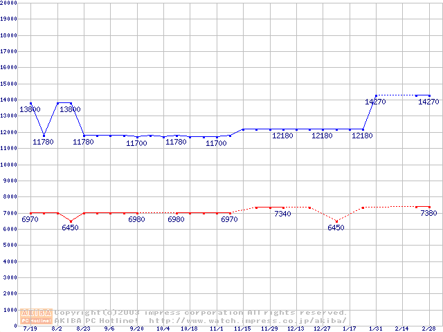 | [↓次グラフ]: | PC100 SDRAM DIMM CasLatency=2の最安値推移 |
