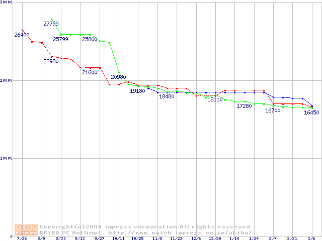 | [↓次グラフ]: | 2.5インチHDD 80GB以上(9.5mm厚)の最安値推移 |