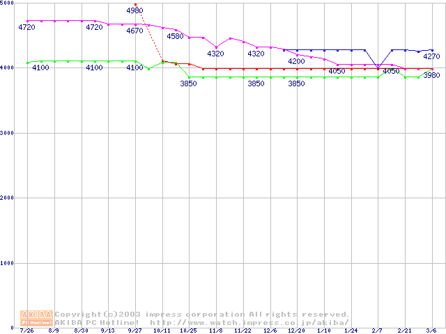 Socket 370・FSB 100MHzの最安値推移