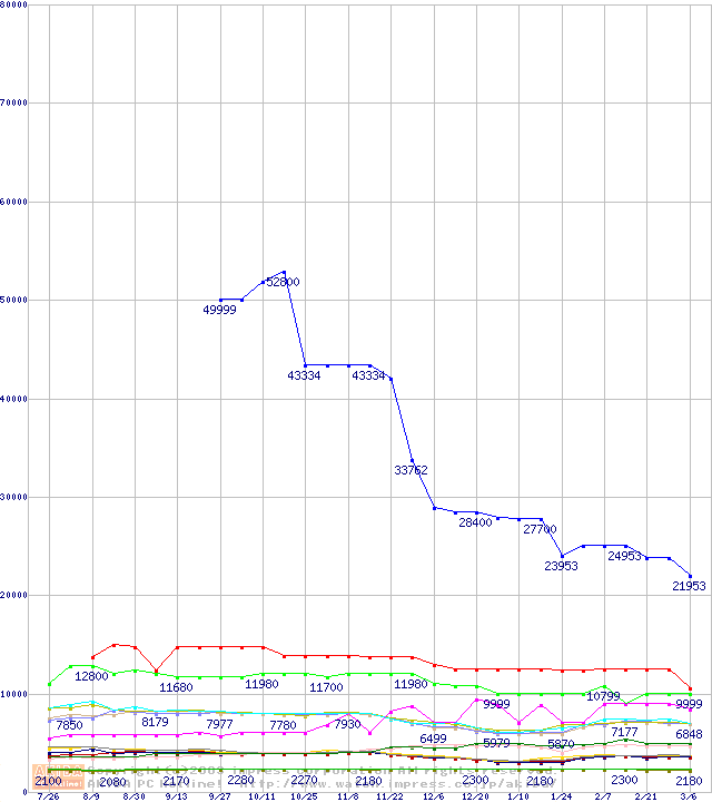 メモリ主要製品(最安値1万円以上)の最安値推移