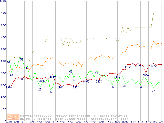 PC133 SDRAM DIMM CasLatency=3の最安値推移