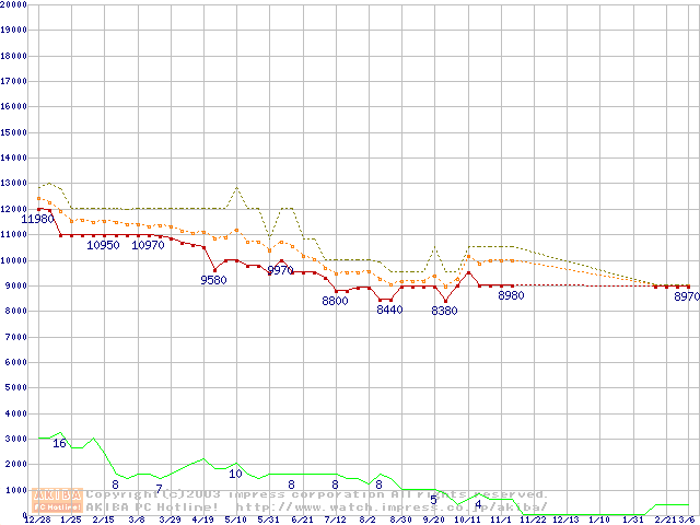 WD Caviar (7200rpm,UltraATA/100,2MB)の最安値推移