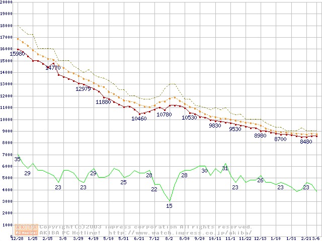 DiamondMax Plus 9 (7200rpm,2MB,UltraATA/133,FDB)の最安値推移