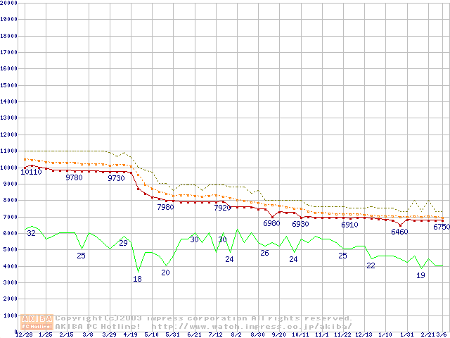 Socket 478 (micro-PGA,FSB 400MHz,L2 128KB,Northwood)の最安値推移