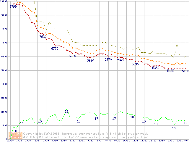 Barracuda 5400.1 (5400rpm,UltraATA/100,2MB,FDB)の最安値推移