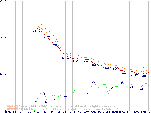 Barracuda 7200.7 (7200rpm,UltraATA/100,2MB,80GB/Platter,FDB)の最安値推移