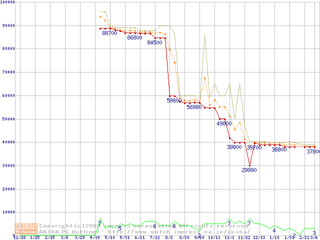 Socket 940 (PGA,FSB 800MHz,L2 1MB,SledgeHammer)の最安値推移