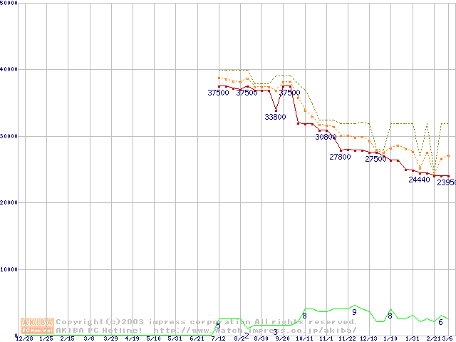 WD Caviar (7200rpm,SerialATA,8MB)の最安値推移