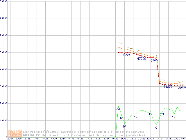 Athlon 64 3200+(2GHz,L2 1MB) リテールパッケージの価格推移