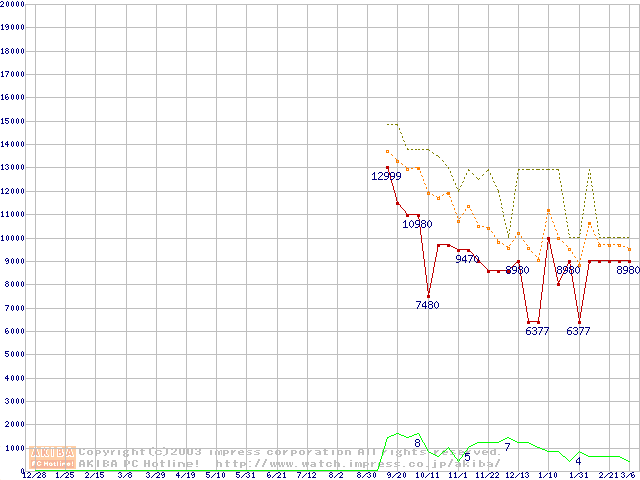 PC4300(DDR533) DDR SDRAM DIMMの最安値推移