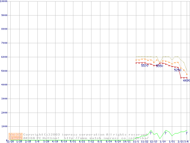 Socket A (OPGA,FSB 266MHz,L2 64KB,Applebred)の最安値推移