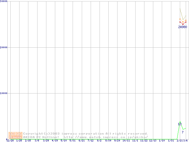 Socket 478 (micro-PGA,FSB 800MHz,L2 1MB,Hyper-Threading,Prescott)の最安値推移