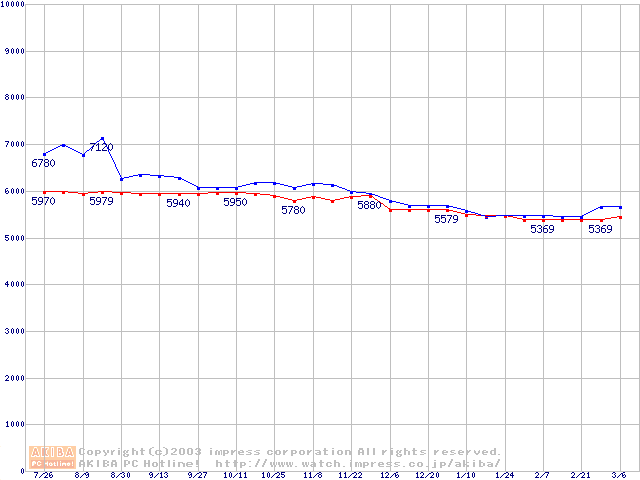 | [↑前グラフ]: | DiamondMax Plus 9 (7200rpm,2MB,UltraATA/133,FDB)の最安値推移 |