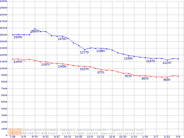 | [↓次グラフ]: | Barracuda 7200.7 (7200rpm,UltraATA/100,2MB,80GB/Platter,FDB)の最安値推移 |