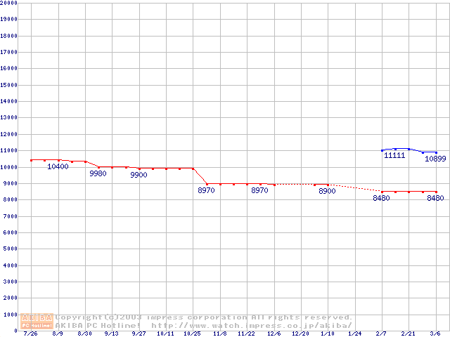 | [↑前グラフ]: | WD Caviar(Special Edition) (7200rpm,UltraATA/133,8MB)の最安値推移 |