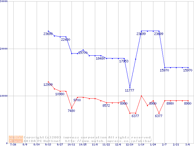 | [↓次グラフ]: | PC2700(DDR333) DDR SDRAM DIMMの最安値推移 |