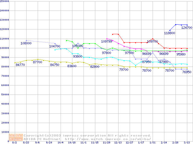 CPU主要製品(最安値3万円~6万円未満)の最安値推移