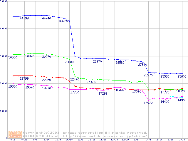 Socket 478・FSB 533MHzの最安値推移