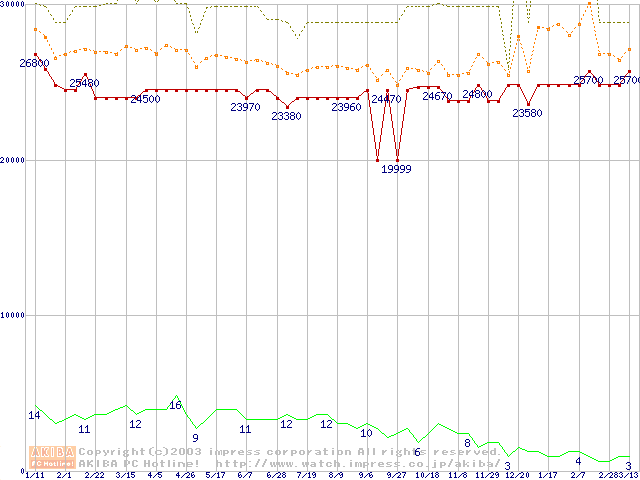 PC800-40 RIMM 512MBの価格推移