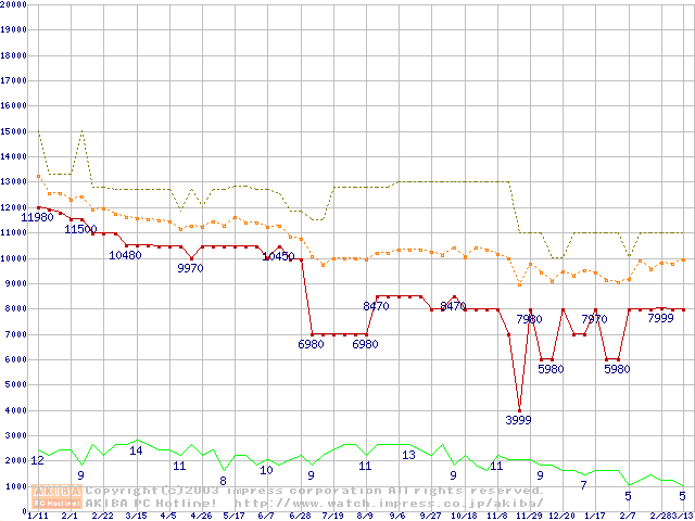 PC1066 DRDRAM RIMM4200(32bit)の最安値推移