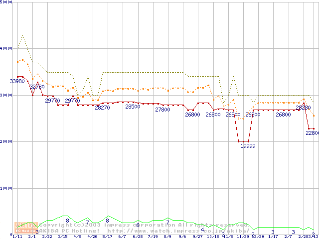 PC1066 DRDRAM RIMM4200(32bit)の最安値推移