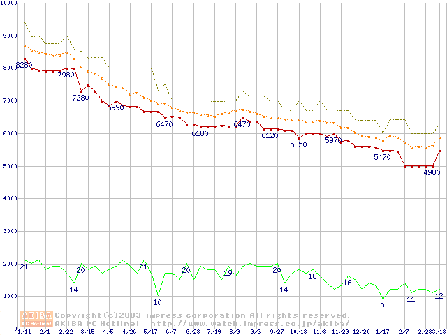 Fireball 3 (5400rpm,UltraATA/133,2MB,FDB)の最安値推移