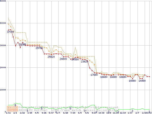 WD Caviar (7200rpm,UltraATA/100,2MB)の最安値推移