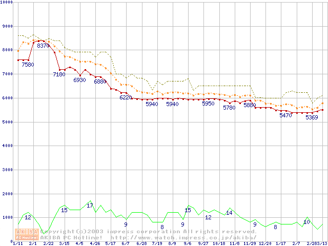 DiamondMax Plus 8 (7200rpm,2MB,UltraATA/133,FDB)の最安値推移