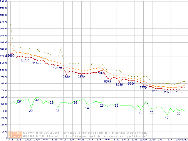 DiamondMax Plus 9 (7200rpm,8MB,UltraATA/133,FDB)の最安値推移