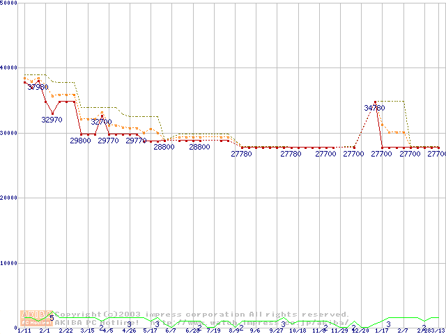 PC1066 DRDRAM RIMM4200(32bit)の最安値推移