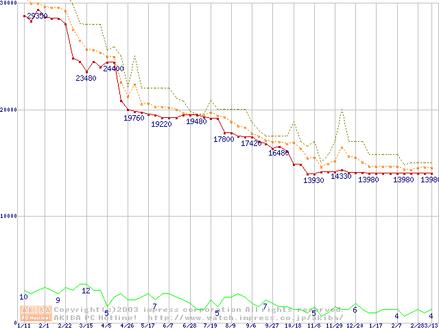 Socket A (OPGA,FSB 266MHz,L2 256KB,Thoroughbred)の最安値推移