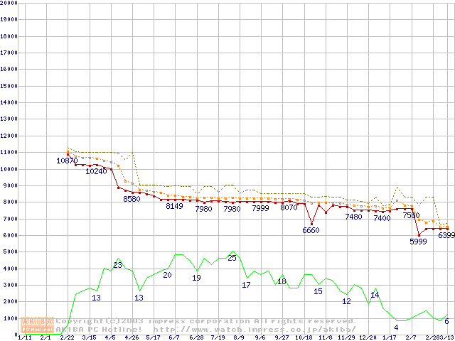 Socket A (OPGA,FSB 266MHz,L2 256KB,Thoroughbred)の最安値推移