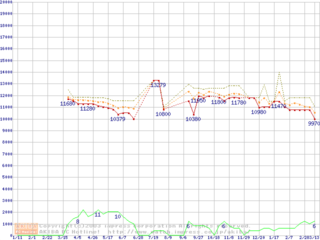 MHT20x0ATシリーズ (9.5mm,4200rpm,UltraATA/100,2MB,FDB,40GB/Platter,FDB)の最安値推移