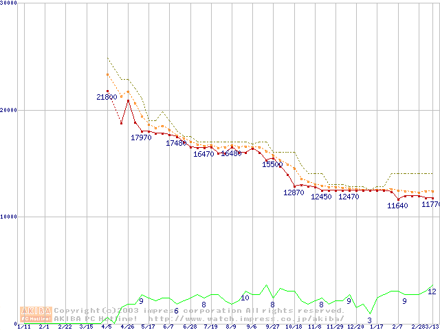 WD Raptor WD360GD (36.7GB)の価格推移