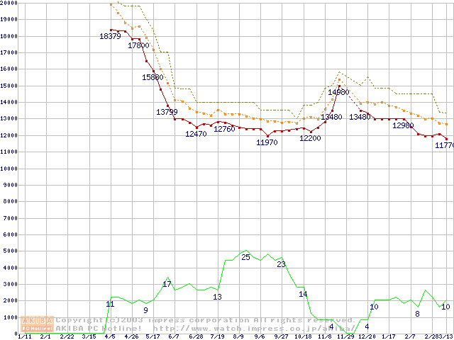 Travelstar 80GN IC25N040ATMR04 (40GB)の価格推移