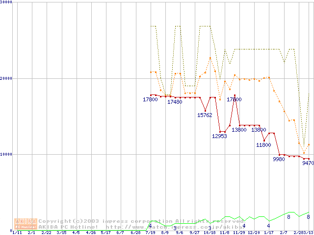 PC3700(DDR466) DDR SDRAM DIMMの最安値推移