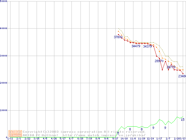 Deskstar 7K250 (7200rpm,SerialATA/150,FDB)の最安値推移