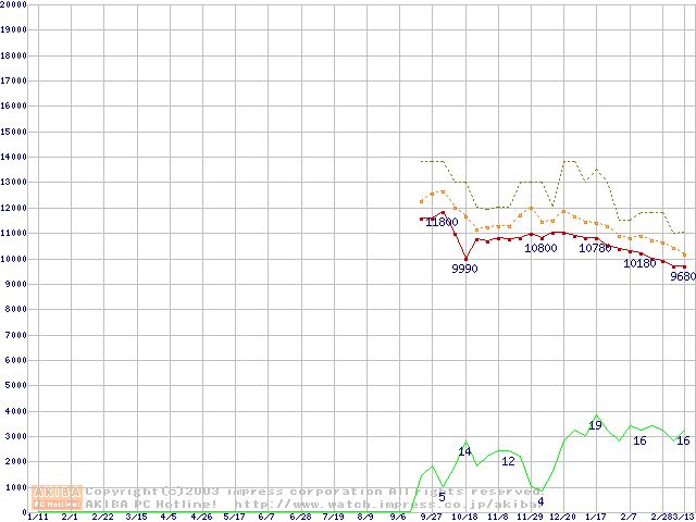 Travelstar 5K80 HTS548020M9AT00 (20GB)の価格推移