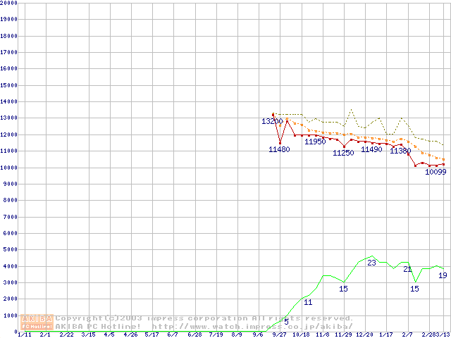 Athlon XP 2600+ (1.92GHz) リテールパッケージの価格推移