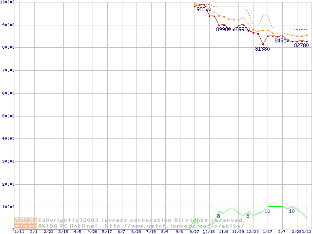 Athlon 64 FX-51(2.2GHz) リテールパッケージの価格推移