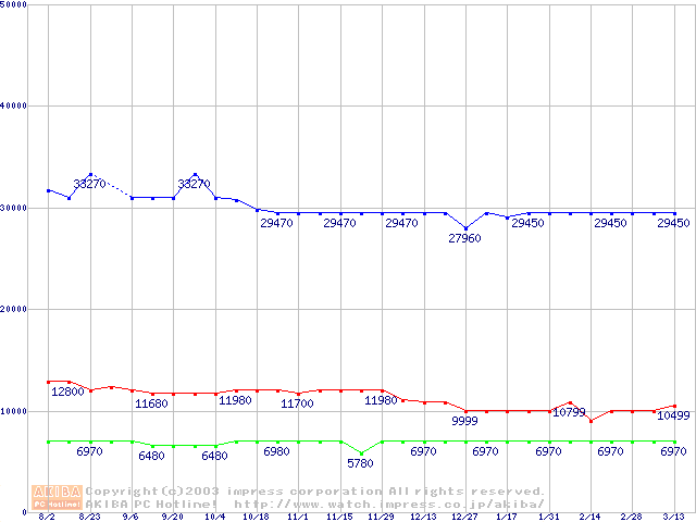 | [↑前グラフ]: | PC2700(DDR333) DDR SDRAM DIMMの最安値推移 |