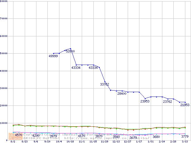 PC3200(DDR400) DDR SDRAM DIMMの最安値推移