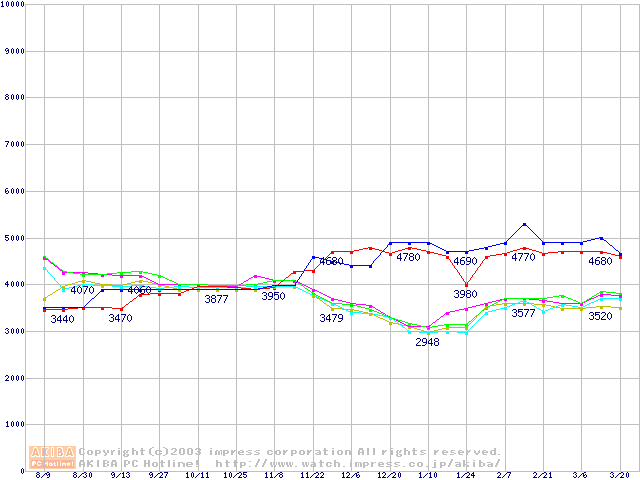 256MBモジュールの最安値推移