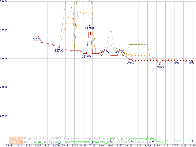 PC2700(DDR333) DDR SDRAM DIMM ECC対応 Registeredタイプの最安値推移
