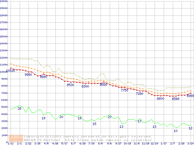 HDD主要製品の最安値推移