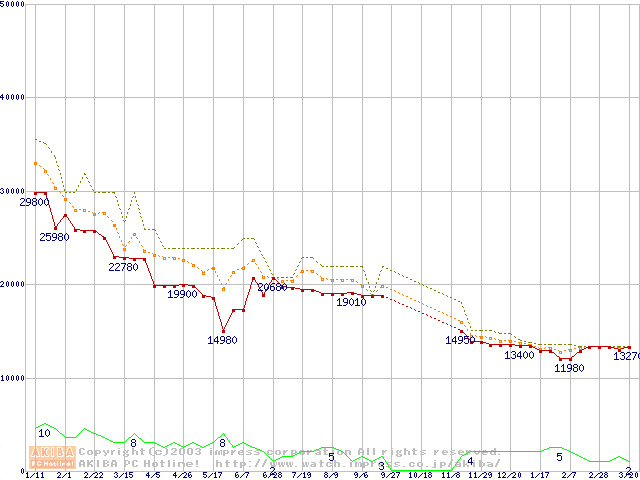 WD Caviar (7200rpm,UltraATA/100,2MB)の最安値推移