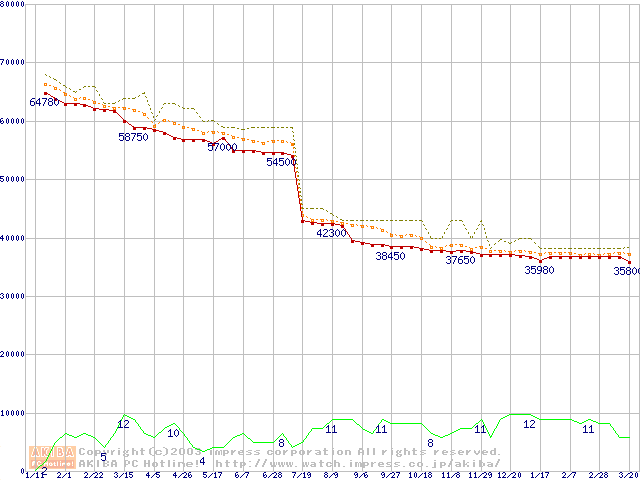 Xeon 2.80GHz(FSB533) リテールパッケージの価格推移